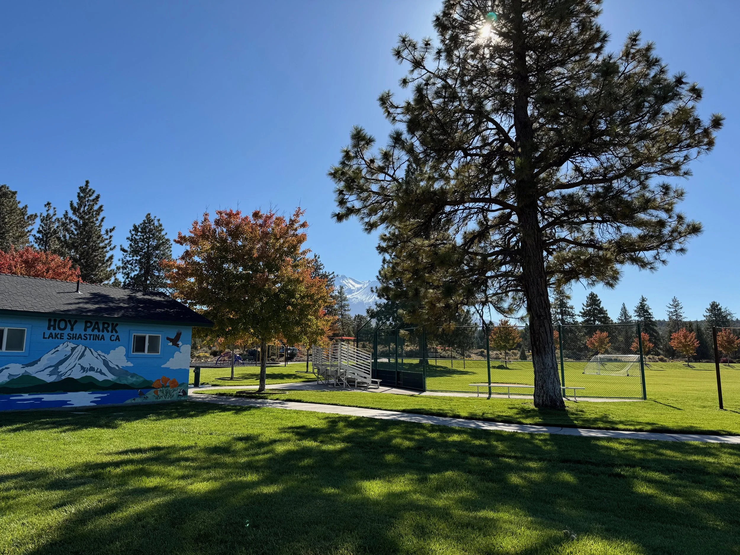 Hoy Park is a beautiful park available for the enjoyment of the Lake Shastina Community. It offers a large field for all kinds of play from kite flying to baseball. There is a wonderful play structure for kids as well as several picnic tables and barbecues. There are also brand new horseshoe pits for hours of fun! Hoy park is also available to rent for special functions and events.